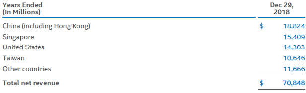 Рассмотрим, какие из ведущих компаний США, занимающихся разработкой компьютерных компонентов, могут пострадать от обострения внешнеторговых конфликтов с Китаем. Во-первых, оценивая степень риска, необходимо ориентироваться на долю выручки, получаемой компанией в Китае и специальных административных районах вроде Гонконга. В случае с корпорацией Intel доля чистой годовой выручки, получаемая в КНР и Гонконге, достигла почти 27 % от совокупной. Это больше четверти всей чистой выручки, и любые потери на этом направлении могут подпортить и без того не очень «красивую» финансовую статистику процессорного гиганта.