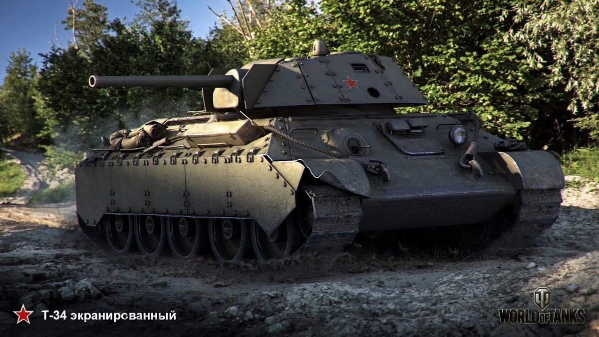 Новый премиум танк в советском дереве развития. Это средний танк 5 уровня Т-34 Экранированный. Главной особенностью нового танка является навесная броня, защищающая гусеницы и катки по бокам. Башня экранированного Т-34 дополнительно усилена стальными листами с заклепками. Вес танка увеличился, но на основных характеристиках это мало сказалось. Выживаемость же боевой машины на поле боя возросла в несколько раз за счет повышения отражающей способности базовой брони новыми элементами. Характеристики танка Т34 Э Сейчас Т-34 экранированный способен наносить до 1660 единиц урона в минуту. Имеет прочность в 500 единиц. Максимальная скорость экранированного варианта 34-ки составляет 57 км/час вперед и 21 км/час при движении задним ходом. Орудие имеет средний урон 110/110/156 единиц за выстрел. Бронепробитие танка Т34 Экранированный составляет 120/150/38 миллиметров брони при попадании снаряда в броню с углом нормали 0 градусов (90 градусов к броне). Разброс на дистанции 100 метров 0,44 метра