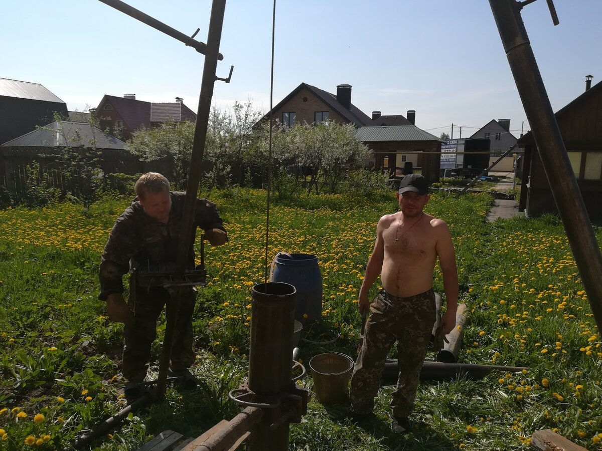 Речь пойдет именно о скважинах выполненных 125 мм трубой. Разумеется Вы сразу поняли, что разговор пойдет о бурении скважин вручную и второй способ, как его называют в народе гидробур (среди буровиков прялка). В том и другом случае применяются одни и те же материалы! Что выбрать именно Вам? Давайте разберем отличия данных видов бурения: В ручную скважины бурят до 30 метров на первый водоносный горизонт. Технология бурения выглядит так, с начало необходимо установить на нужную глубину 159 мм металлическую трубу, в дальнейшем при поможи желонки выбрать остатки песка и грунта. Установить основную пластиковую колонну и после этого вынуть обсадную металлическую колонну. Стоимость данного бурения в зависимости от региона начинается от 1100р/м с материалом. Выглядит это так: Гидробур - это бурение скважин с промывкой. По мне это в разы эффективней, чем ручное бурение. На данных малогабаритных установках буровики умудряются делать скважины аж под 100 метров. Стоимость погонного метра составляе