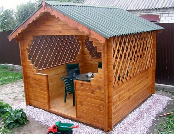 Беседка – место для отдыха, как в одиночестве, так и с большой компанией друзей. Но совсем необязательно делать масштабное строение и затрачивать много времени и сил. Беседка – простое сооружение, с легкой конструкцией. Построить ее можно самостоятельно и быстро, например - за один день. Достаточно следовать простым рекомендациям и возведение такой постройки не займет много времени. А затраченные усилия, обернутся приятными воспоминаниями, о времени проведенном в этом месте. Строительство пошагово: Выбор места При выборе места нужно учесть то, для чего беседка будет предназначена. Если планируется там обедать или ужинать достаточно часто, то размещать ее следует ближе к кухне. Для отдыха в одиночестве или с друзьями выбрать уединенное место, откуда будет открываться красивый обзор на сад. Также необходимо учитывать тип строения. Когда беседка открыта с трех сторон, то логичней разместить ее у стены. А если она открыта полностью, то подойдет место, откуда не будет открываться вид на
