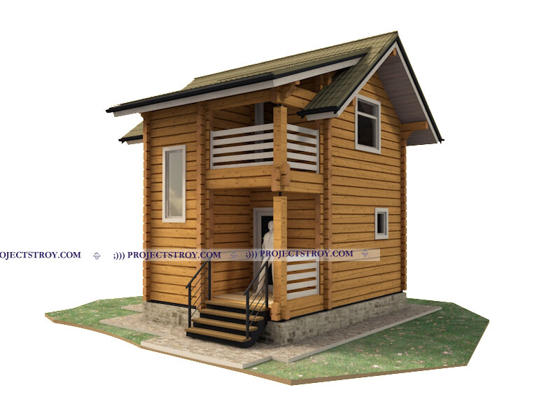 Проект двухэтажной бани 5.6 х 5.6 м с двумя комнатами на втором этаже Проект под строительство из лафета 150х(h)250 мм Конечно, при желании, можно поменять стеновой материал на брус или бревно