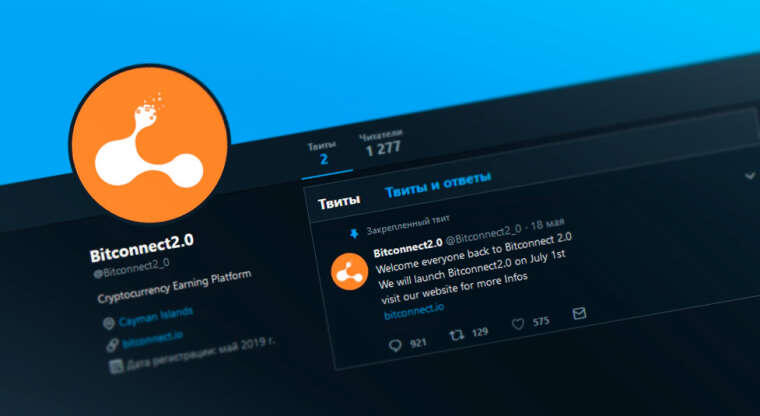 1-го июля этого года может быть запущен проект с красноречивым названием Bitconnect 2.0, по крайней мере об этом сообщает созданный ранее в этом месяце одноименный аккаунт в Twitter. Впрочем, анонс старта платформы не обошелся без присущей скам-проектам лжи. В сообщении сказано, что потенциальные инвесторы могут приобрести токены на одной из ведущих бирж криптовалют Binance - хотя на самом деле это неприкрытая ложь. Несмотря на утверждение, что дополнительная информация о старте проекта доступна на его «официальном» веб - сайте, активность в социальных сетях остается единственным намеком на предстоящие планы. Сайт представляет собой форму регистрации для получения уведомлений о новостях, таймер обратного отсчета и дубликат ленты в Twitter. Напомним, оригинальный Bitconnect - якобы платформа для обмена и кредитования - была закрыта в январе 2018 года после того, как на поверхность всплыло достаточно доказательств того, что компания является мошеннической. Курс криптовалюты за считанны