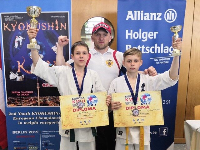 В Берлине завершилось второе первенство Европы по киокушин каратэ среди юношей и юниоров. В соревнованиях участвовали спортсмены 26 стран. В составе национальной сборной команды Российской Федерации выступали калининградцы, победители первенства России 2019 года среди юношей 12-13 лет Егор Вакарчук и Александр Кузнецов. Егор Вакарчук провел три боя. В финальном бою судьи два раза добавляли по минуте к основному времени. В итоге они отдали победу сопернику Егора из нашей же российской сборной команды. Таким образом, Егор Вакарчук занял второе место среди юношей 12-13 лет в весовой категории до 40 кг. Александр Кузнецов провел два боя и завоевал третье место среди юношей 12-13 лет в весовой категории до 35 кг. «Заняв на первенстве Европы в Берлине второе и третье места в своих весовых категориях, Егор Вакарчук и Александр Кузнецов внесли весомый вклад в копилку достижений национальной сборной Российской Федерации, которая завоевала первое общекомандное место», — рассказал тренер-преподав