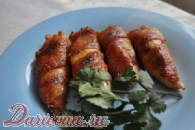 Подробный пошаговый рецепт с фотографиями можно посмотреть на сайте в заметке "Курица в беконе". Другие интересные рецепты на второе можно найти в разделе "Рецепты на второе".