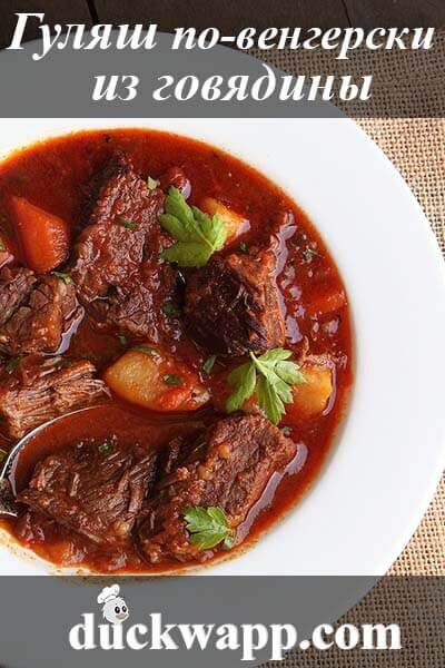 Гуляш – национальное достояние Венгрии. Этот острый, густой суп в каждом регионе готовят по-своему. Попробуем приготовить гуляш по-венгерски из говядины. Несмотря на многокомпонентный рецепт, блюдо готовится легко и быстро, а результат порадует всех домочадцев. Ингредиенты: Мякоть говяжья – 500 гр