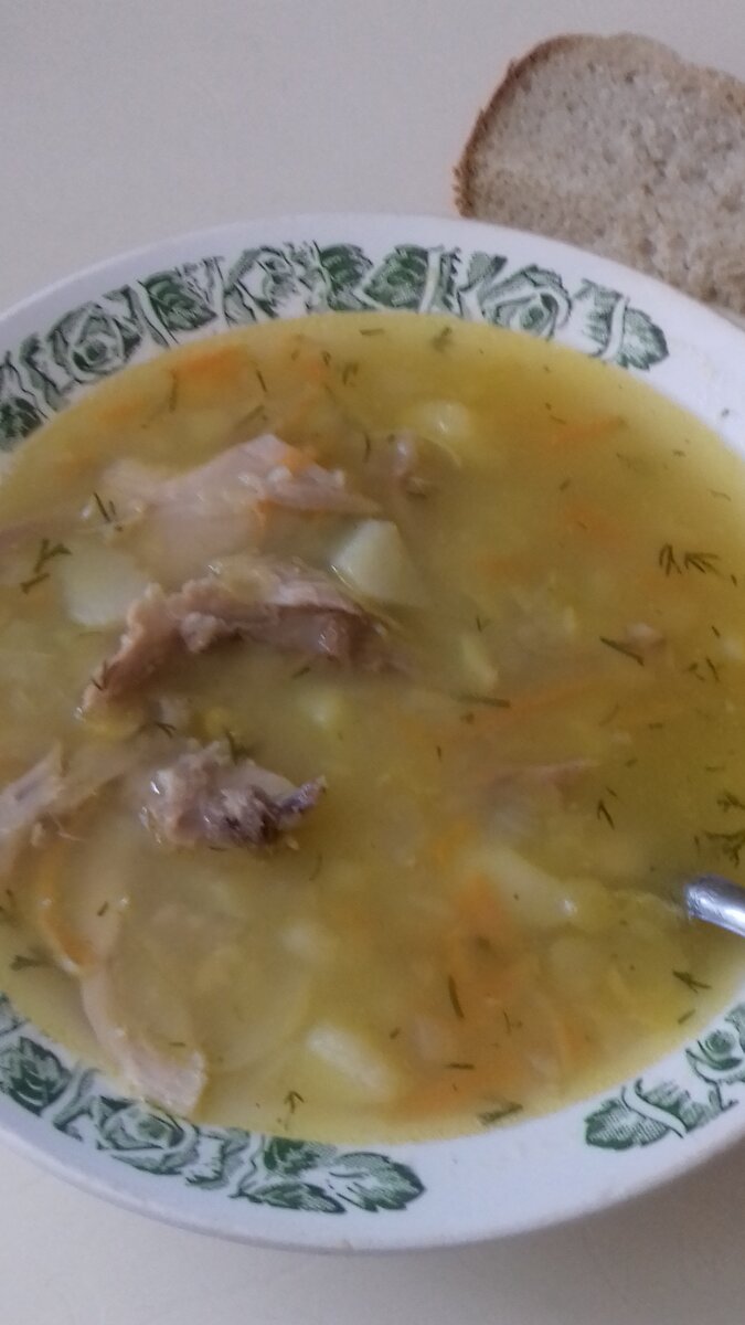Думаю что многие любят гороховый суп, но не варят его так часто как хочется. Замочить горох. .... Никогда не замачиваю и мясо в бульон ложу прямо из морозильной камеры, не размораживая. Этому научилась работая в заводской столовой. Итак: Кладем в кастрюлю замороженное мясо, заливаем холодной водой и ставим на плиту.Доводим до кипения. Снимаем накипь, убиваем огонь до минимума и варим примерно 1 час. Горох хорошо промываем до прозрачной воды (будет меньше пены при кипении )и добавляем к мясу. Я использую дробленый горох и примерно через 30 минут он начнёт развариваться, закладываем порезанный кубиком картофель, зажарку, солим, специи по вкусу и варим до готовности. Ингредиенты : -вода 3 литра -мясо (у меня кролик)-600-800 г -Горох 1стакан -картофель 3-4 крупные 1 морковь 1 луковица крупная -соль и специи -по вкусу Приятного аппетита.