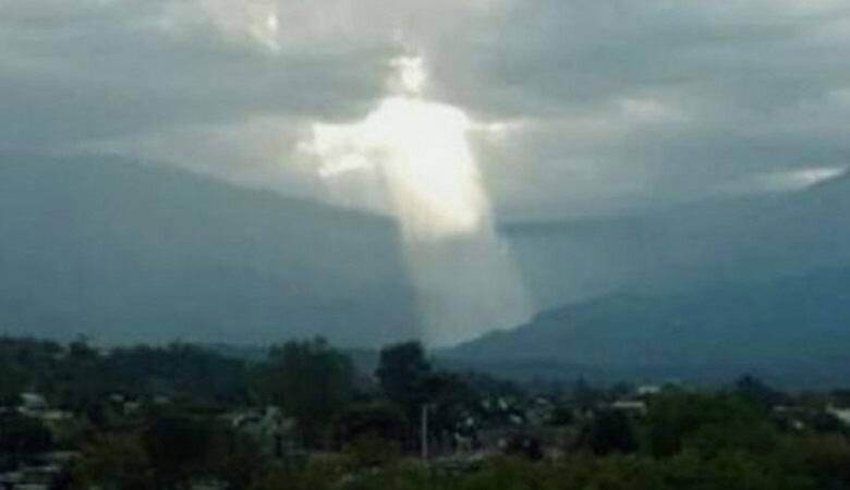 - Во вторник, 14 мая, жители аргентинского города Сан-Сальвадор-де-Жужуй и окрестных населенных пунктов (провинция Жужуй) неожиданно стали свидетелями поистине поразительной картины. Стояла пасмурная погода, однако в определенный момент сквозь облака в небе вдруг ярко засияло солнце, и его свет принял антропоморфный вид. Многочисленные очевидцы сразу рассмотрели в этой фигуре изображение бородатого длинноволосого мужчины в рясе, раскинувшего руки в стороны. - Представленный выше снимок был сделан местной жительницей Моникой Арамайо. Когда аргентинка выложила полученное фото во Всемирную паутину, необычный кадр мгновенно стал «вирусным», разлетевшись по различным ресурсам Интернета. Как и следовало ожидать, многие завсегдатаи виртуального пространства (а также непосредственные наблюдатели этой картины) заключили, что речь идет об образе Иисуса Христа. Утверждается, что у него был даже заметен терновый венец на голове. - Особенно сильно новость о предполагаемом божественном чуде вско