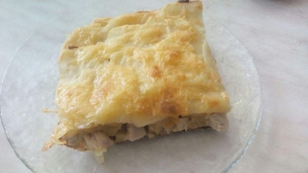 Очень простой, быстрый, но вместе с тем вкусный и сытный рецепт пирога Для него нам понадобится: мясо курицы - 400-500 гр мука - 2 ст яйцо - 2-3 шт молоко - 1,5 ст соль, специи по вкусу разрыхлитель 0, 5 ч.л. или гашеную соду сыр - грамм 200 картофель и кабачок ------------------------------------------------------------------------------------------------- Приготовление Взбиваем немного яйцо с солью. Добавляем муку, разрыхлитель, соль, специи ( у меня это прованские травы и смесь 5 перцев). Хорошенько перемешиваем. Вливаем молоко. Тесто должно получится жидковатым, почти как на оладьи, немного гуще. Обжариваем или варим мясо курицы (у меня было куриное филе). Мелко режем. Выкладываем готовое мясо в тесто. Трем сыр и тоже добавляем в тесто. Можно также добавить зелень, будет вкусно. Все хорошенько перемешиваем. Эту смесь выливаем на смазанный растит. маслом противень. сверху можно выложить кабачки, я выкладывала картофель молодой и засыпаем тертым сыром. Ставим в разогретую духовку м