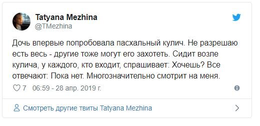 В Твиттере есть аккаунт «Говорят дети», в котором родители делятся смешными перлами своих и чужих детей. Мы взяли оттуда несколько забавных примеров: Привет, если вам понравилась статья — жмите лайк сбоку и подписывайтесь на канал. Так мы будем на связи и вы не пропустите крутые публикации. А если хотите написать отзыв или совет, пишите на почту основателя проекта SNTCH.com Дарьи: daria@snatchnews.com