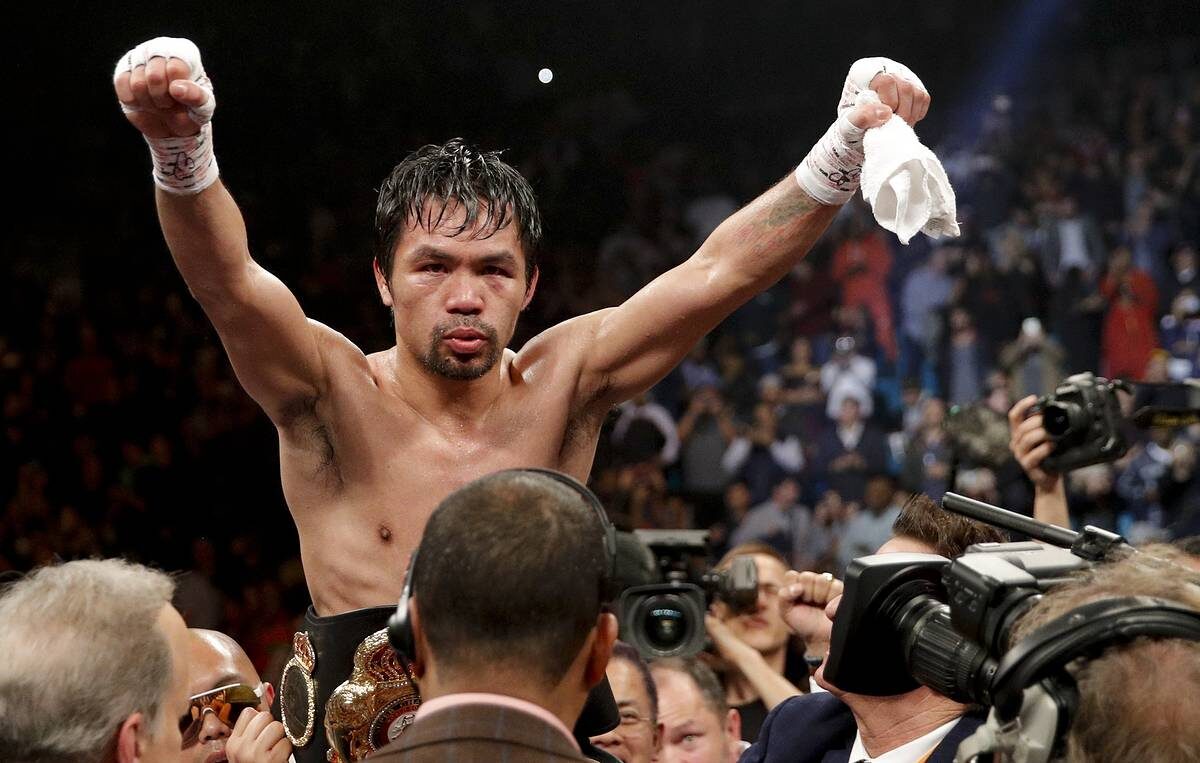 МЕННИ ПАКЬЯО Эммануэль Дапидран «Мэнни» Пакьяо— филиппинский боксёр-профессионал, выступающий в полусредней весовой категории. Также известен как актёр и политик, председатель спортивного комитета сената Филиппин. Первый и, на данный момент, единственный боксёр, становившийся чемпионом мира в восьми весовых категориях. Чемпион мира в наилегчайшей (WBC, 1998—1999), 2-й легчайшей (IBF, 2001—2003), полулёгкой (The Ring, 2003—2005), 2-й полулёгкой (WBC, 2008; The Ring, 2008), лёгкой (WBC, 2008—2009), 1-й полусредней (The Ring; IBO2009—2010), полусредней (WBO, 2009—2012, 2014—2015, 2016—2017; WBA, 2018—н. в.) и 1-й средней (WBC, 2010—2011) весовых категориях. Первый и, на данный момент единственный пятикратный линейный чемпион в 5 весовых категориях. «Боксёр 2006 года» и «Боксёр 2008 года», «Боксёр 2009 года», «Боксёр десятилетия» по версии Ассоциации журналистов, пишущих о боксе. Лучший боксёр вне зависимости от весовой категории по версии журнала «Ринг». Провёл 60 поединков. Его рекорд