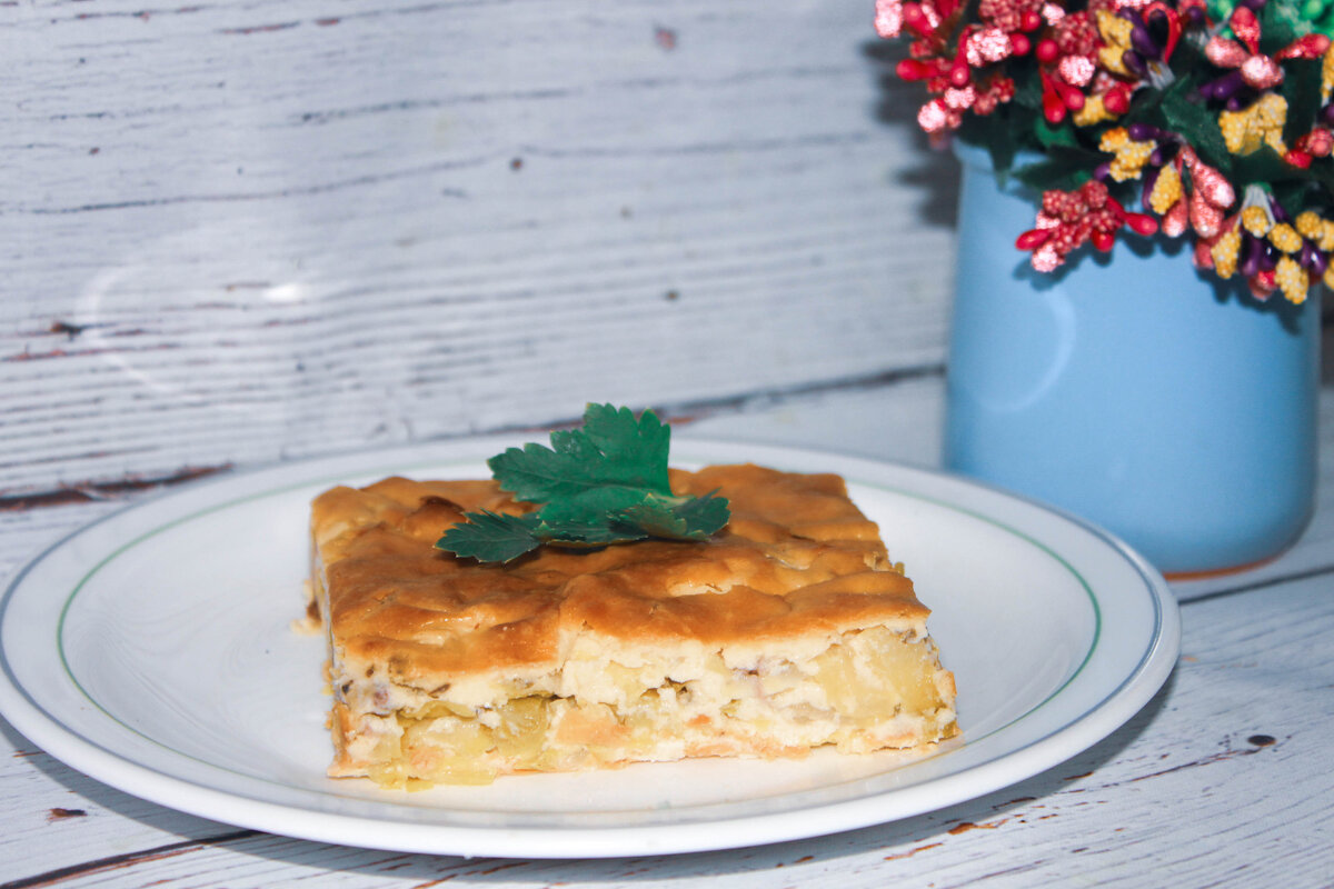 Рецепт очень простого и очень вкусного пирога. Ингредиенты: Для теста: Яйцо - 1 шт. Растопленный маргарин - 150 г Сметана - 200 г Соль - 0,5 ч.л. Сахар - 1 ст.л. Мука - 1/4 стакана Гашеная сода - 0,5 ч.л. Для начинки: Капуста - 300 г Сливочное масло - 40 г Приготовление: 1. Замесить тесто из всех вышеперечисленных ингредиентов. Оно должно получиться густое как сметана. 2. Капусту нашинковать 3. В форму для запекания положить 5 ст.л. теста, сверху выложить капусту, на нее положить кусочки масла, сверху залить оставшимся тестом. Выпекать в предварительно разогретой до 200 градусов духовке 30 минут