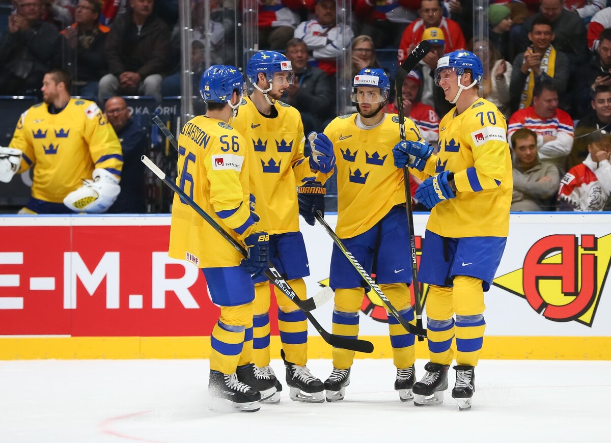 Сборная Швеции хорошо начала матч. Уже на 8-й минуте Ландескуг забил 0:1. На протяжении всего 1-го периода жёлто-синие смотрелись лучше. После перерыва сборная России вышла совершенно с другим настроем. Работа тренера видна. Отыгрываемся на первой же минуте второго периода! Шикарно раскатали! Гол - Анисимов (Гусев+Кучеров). Не прошло и пяти минут, как Дадонов (Сергачёв+Кузнецов) выводит вперёд нашу сборную! Поднялся на первое место в гонке снайперов. Вот такая игра нам уже нравится. Следом голешник в своих лучших традициях от Овечкина (Малкин+Хафизуллин), мы ждали этого! Вторая шайба на этом ЧМ. Кузнецов выиграл вбрасывание в чужой зоне и Капризов молниеносно бросил в домик Маркстрёму! Разгром 1-4! Продолжаем уничтожать! Григоренко забил пятую шайбу нашей команды в периоде, Малкин шестую! Шведы в глубочайшем нокауте! Нюландер сокращает разрыв в счёте до четырёх шайб. Но уже через 55 секунд Димка Орлов (Барабанов+Телегин) кистевым броском забивает гвоздь в крышку гроба! Ну и счё