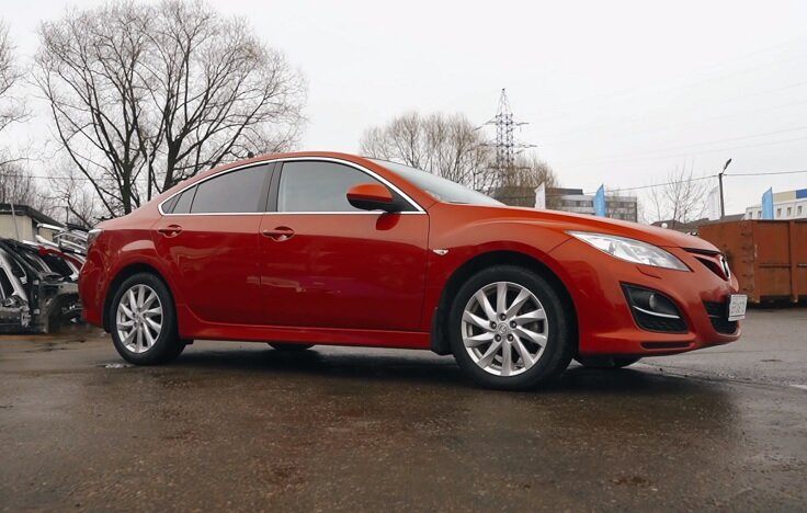 Мы взяли на проверку Мазда 6 второго поколения. Их выпускали с 2007 по 2013 годы с рестайлингом посередине. Цены на неё начинаются, если повезёт, от уровня 400 000 рублей. И начнём мы нашу экспертизу с поиска ржавчины.Она покрывает Mazda6 в колёсных арках, на порогах, нижних кромках дверей и даже возле задних боковых стёкол. Окантовки решёток и противотуманок страдают от сугробов. Пластиковую мишуру на кузове можно считать расходником. Бамперы и накладки на порогах из-за слабых креплений отвисают со временем. С передней подвеской есть проблемы. Особенно скрипы. Голосистая она. Экраны, которые должны защищать кузов от выхлопной системы, тоже дребезжат. Зато втулки и стойки стабилизатора поперечной устойчивости - образец долговечности. Ходят по 80 000 - 100 000 километров. Амортизаторы живут до 150 000 километров, рулевые наконечники - до 170 000. Сайлент-блоки - до 150 000. Рулевое управление на Mazda 6 живет до 50 000 - 70 000 километров. Датчик поворота руля слабый; его пластиковую