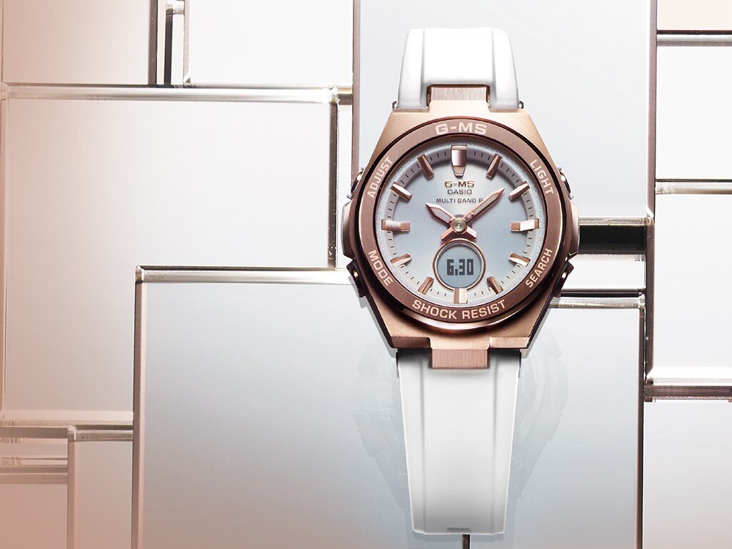 Серия MSG-W200 пока представлена только пятью моделями — белые MSG-W200-7A, MSG-W200G-7A, MSG-W200G-4A, MSG-W200G-1A1 цвета розового золота и черные MSG-W200G-1A2. Тут вопросов нет, цвета ходовые и подходят для женской половины.
