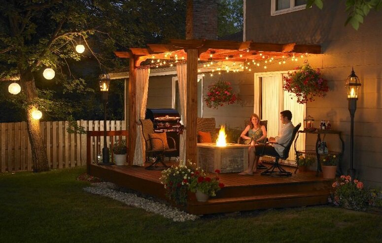 Летние вечера связаны с отдыхом в гамаке или кресле на террасе. Ничто так не успокаивает, как настроение освещения в саду и на террасе.