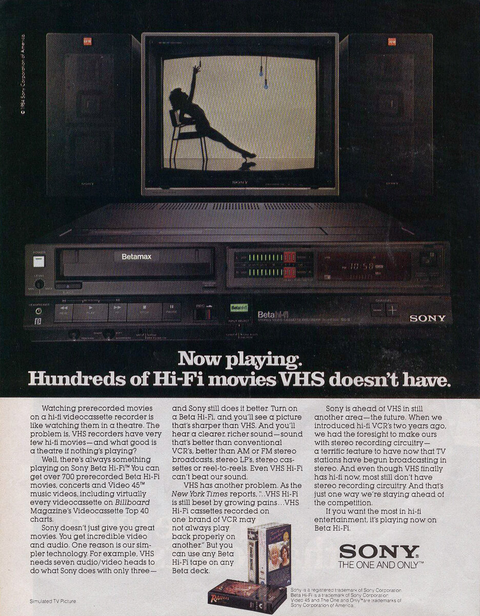 В течение сорока лет JVC доминировала на рынке с его VHS, Super VHS и VHS-C форматами и собирала миллиарды роялти, пока Sony не желала учитывать то, чего желали потребители. Sony начала выпускать видеомагнитофоны VHS в 1988 году, когда формат был абсолютно доминирующим на рынке. И даже после этого Sony стабильно продолжала выпускать новые модели видеомагнитофонов Betamax до 27 августа 2002 года, когда было объявлено о прекращении производства и имя Betamax исчезло в истории, окончательно сдав свои позиции.