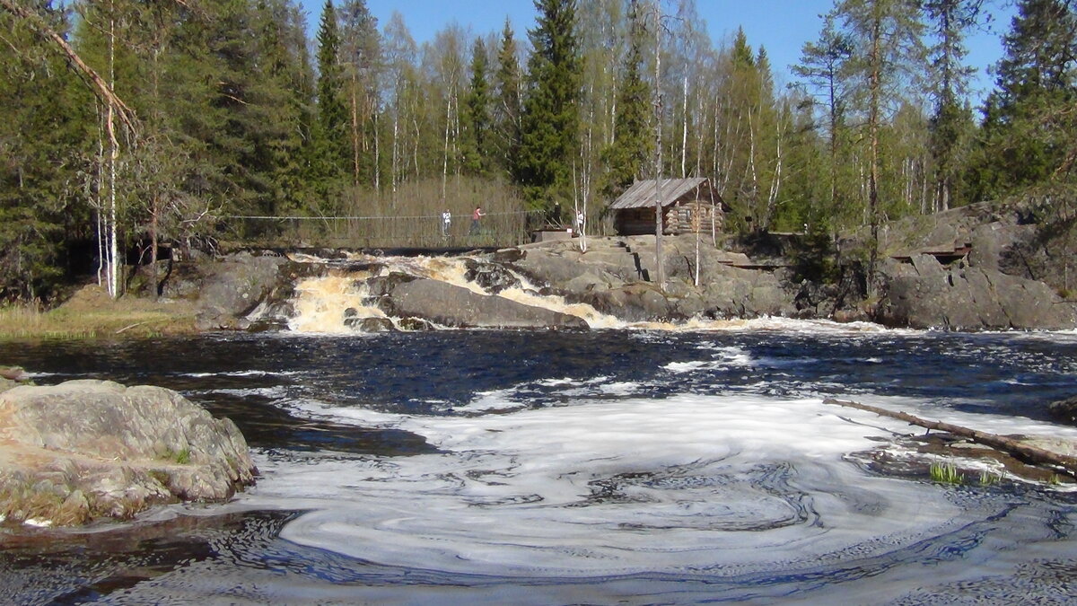 В 25 километрах от районного центра Карелии, города Сортавала и не доезжая 5 км до более знаменитого "соседа" Горный парк Рускеалла, расположены Рускеальские водопады. Хотя знатоки нас поправят, уточнив, что на самом деле данный объект является порогами реки Тохмайоки. Первоначальное название реки Русколлка, что в переводе с карельского означает "красная" или "рыжая". Причина такого названия становиться понятным с первого взгляда на воды реки, имеющие специфический, но далеко не редкий для Карелии цвет воды. От этого названия, немного трансформировавшись, осталось наименование населённого пункта Рускеала, знаменитого своим мраморным карьером (рассказ о котором будет позднее). Современное название Тохмайоки, река получила с приходом на эти земли финнов, и означает "бурная река". А оценить её буйный нрав у Вас и представиться в ходе предлагаемой прогулки. Сразу оговоримся, если Вы являетесь поклонником "дикой" природы, то к сожалению Вам уже не сюда. Той первозданной красоты, которая п