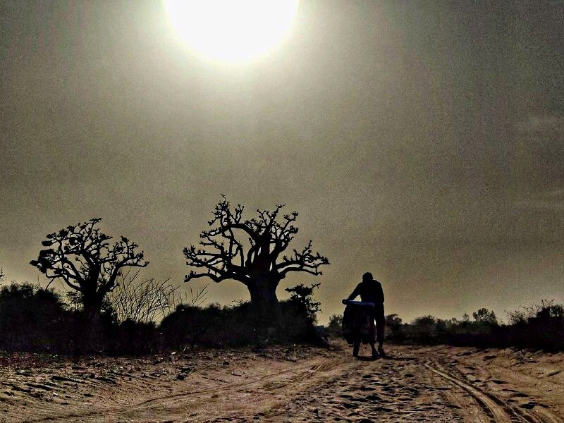 В прошлый раз я рассказал о своих первых впечатлениях о Сенегале, сегодня история о том, как мы попали в земной рай. Мы с Сашей доели и тоже отправились вперед, в сердце этой новой, уже 14-й для нас страны. До заката осталось буквально три часа, а до места, запланированного под ночевку, – 75 километров. Граница Мавритании и Сенегала – это не только граница стран, но и граница, разделяющая пустыню Сахару и тропическую часть Африки. И переход этот довольно резкий. Вокруг нас уже не песок, а залитые водой сельскохозяйственные луга. Так же, как в Мавритании, на дорогу выбегают дети, которые шумят и что-то кричат. По всему пути разбросаны деревушки с домами из соломы и тростника. Все выглядит очень бедно. Мы запланировали ночевку в каком-то лаундж-отеле, но работает он или нет, мы не знаем. В прошлые разы в 70 процентах случаев отели, показанные на карте, были закрыты. Если на этот раз гостиница будет закрыта, то ехать дальше у нас не получится, так как будет уже темно. Ночевка вблизи соло
