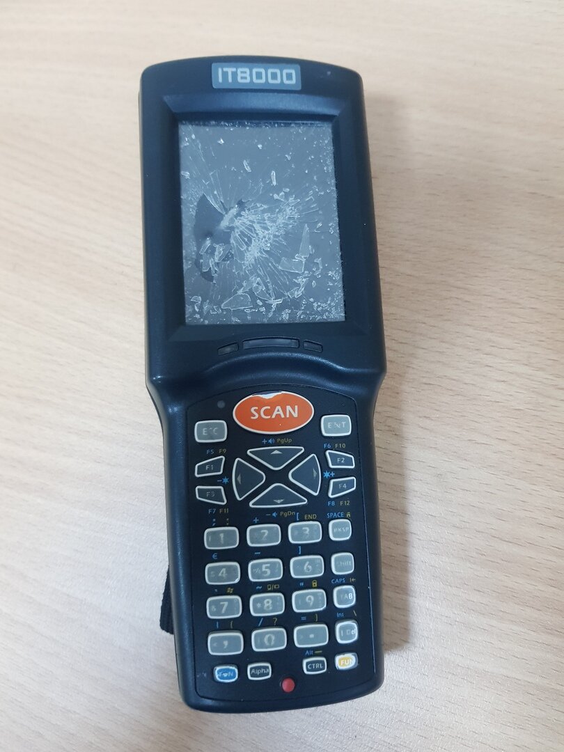 Одна из самых частых поломок Терминалов сбора данных связана с относительной хрупкостью сенсорных дисплеев, при воздействии на который, либо выходит из строя сам сенсор, либо разбивается стекло. Как правило стекло с сенсором меняется довольно просто, единственная сложность найти эту запчасть, если ТСД достаточно старый, то её может не оказаться. Поступивший в ремонт Терминал сбора данных требовал замены, как сенсора ,так и дисплея в результате сильного повреждения. При замене использовалось стекло снятое с Донора. После замены аппарат пригоден для дальнейшего использования.