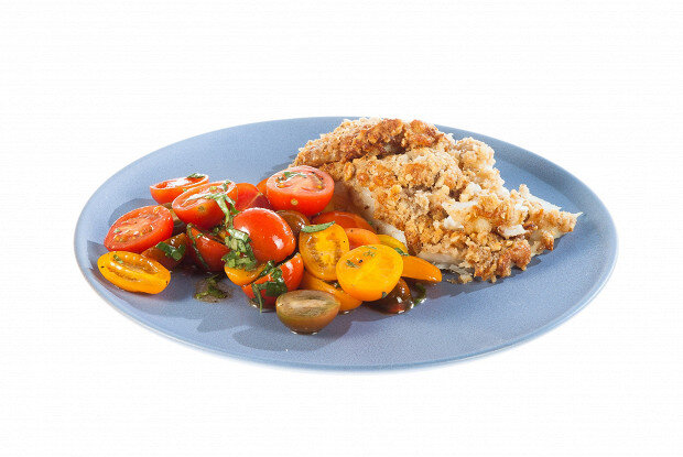 2. Филе трески выложить на противень с пергаментом, смазать его растительным маслом. Выложить ореховую смесь на рыбу ровным слоем. 3. Отправить в духовку, разогретую до 180 градусов в режиме конвекции, на 30 минут.