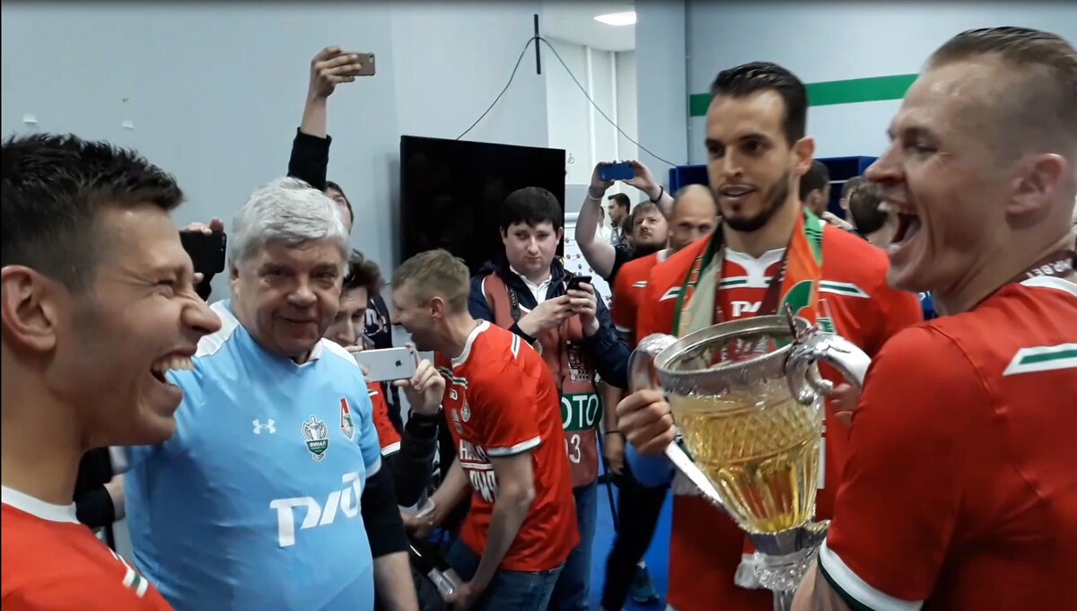 Предлагаем вашему вниманию видео происходящего сумасшествия в раздевалке "Локомотива" после победы в Кубке России.