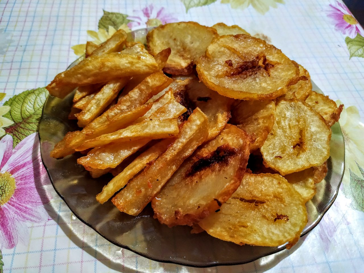 Для приготовления картофеля с хрустящей корочкой нам понадобится 5 больших картофелин, 300-400 мл растительного масла и немного свободного времени. Берем картофель, промываем его и отвариваем в мундире: Сваренному картофелю даем остыть, затем очищаем его от кожуры, режем шайбами или полочками, как Фри: Разогреваем сковороду с маслом и отправляем наш порезанный картофель жариться: Как только картофель приобретет ярко выраженную золотистую корочку, достаем его из масла (даем маслу стечь) и выкладываем на тарелку (не забываем подсолить). Наш хрустящий картофель готов, можно его подавать с любимым соусом. Приятного вам аппетита!!! Если вам понравился рецепт, подписывайтесь на канал. Котан ждет вас =)