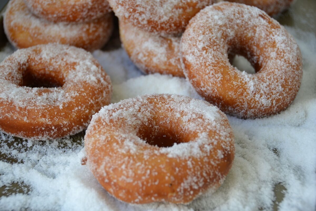 Пончики считаются одним из самых популярных кондитерских изделий в мире. Его любят есть люди всех возрастов. Ведь что может быть аппетитней чашки чая с пончиком. Ингредиенты: 1.5 ст. муки 2 ст. ложки сахара 1ст. ложка сливочное масло 1 яйцо 1/ 2 ст. молока 1/2 ч. ложки соды 100 гр. растительного масла порошок корицы 1 шаг. Готовим тесто. 2 шаг. Готовое тесто раскатать в пласт толщиной 0.5 см. 3 шаг. Стаканом вырезать кружочки. Стаканом меньшего размера из каждого кружочка вынуть середину. 4 шаг. Жарить пончики надо в разогретом масле. Готовые пончики посыпать сахарной пудрой. Хорошего вам настроения.