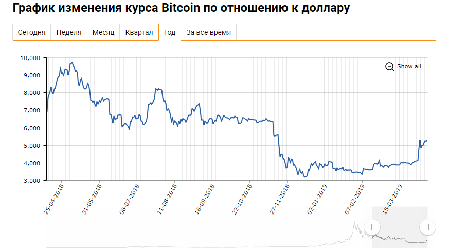 Точный 1 биткоин в долларах можно посмотреть на любом специализированном сайте. Он будет неизменным в течение дня после официального объявления. Совсем по-другому обстоит дело сколько сейчас стоит 1 биткоин на сегодня. Его не устанавливают ни Центральный Банк России (как в случае с курсом рубля к доллару), ни любая другая организация. Курс 1 биткоин в долларах формируется под влиянием спроса и предложения. Поэтому нельзя сказать точную цену ВТС на сегодня, а лишь средневзвешенное значение криптовалюты. Чем выше спрос, тем выше взлетает курс. Все изменения за день обновляются оперативно, в режиме онлайн. График 1 биткоин в долларах Из-за нестабильности курса btc к доллару в течение дня, мы решили составить график колебаний стоимости ВТС. Он формирует поминутный отчет о соотношении биткоин/доллар и позволяет следить за точными цифрами, а не только за средним значением. При наведении курсора на график, появится информация о курсе биткоина в любое время дня. В таблице, которая находится