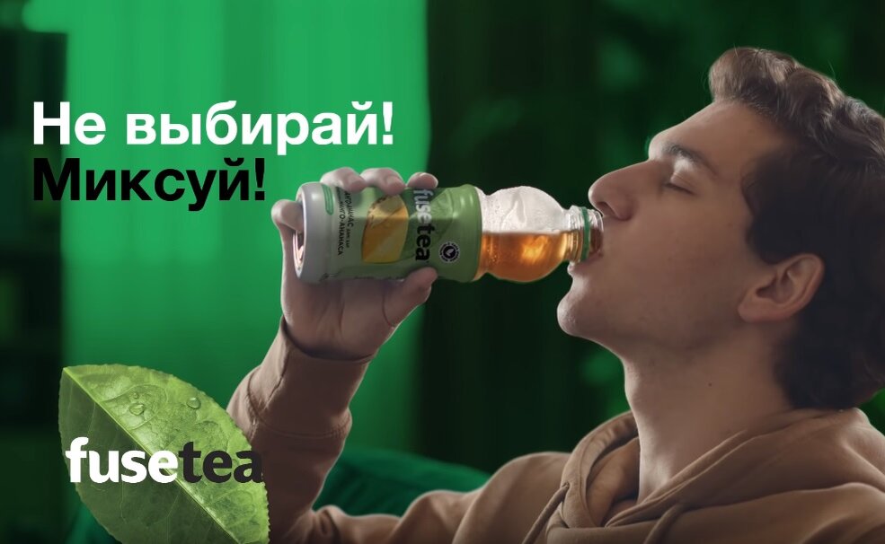 Fuse Tea в новом музыкальном ролике под названием «Микс удовольствия для тебя» призывает всех помиксовать со вкусами холодного чая. Лето уже не за горами и что как ни холодный освежающий чай Fuse Tea способен утолить жажду и наполнить ваш день свежестью и позитивом. Вместе с героями рекламы создатели рекламного ролика Fuse Tea предлагают нам «не выбирать, а миксовать» и это не только касается вкусов нового чая «Фьюсти». Так первому герою в рекламе Fuse Tea «Микс удовольствия для тебя», молодому парню, пришлось выбирать между уборкой в своей комнате и игре в баскетбол с друзьями на площадке. Но по сценарию ролика, сделав глоток чая Fuse Tea, актер рекламы решил не выбирать, а миксовать! И устроил в своей комнате уборку с элементами профессионального баскетбола. Второй героиней музыкального ролика Fuse Tea «Микс удовольствия для тебя» стала мечтательная девушка. Актриса ролика чая «Фьюсти» по сюжету любит технологии и любит рисовать и, как и первый герой не хочет выбирать что-то одно, п