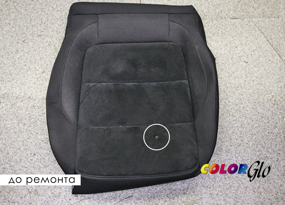 РЕМОНТ ПРОЖОГА НА СИДЕНЬЕ – ПЕРЕТЯЖКА СИДЕНЬЯ – ПЕРЕТЯЖКА АЛЬКАНТАРОЙ – В АВТОАТЕЛЬЕ COLOR GLO RUSSIA Несмотря ни на что для заядлых курильщиков нет никаких запретов на курение в салоне. Так что вновь и вновь возвращаемся к теме прожогов. Не важно, какое время года – по нашей статистике число обращений с прожогами всегда примерно одинаковое в любой сезон. Автомобиль Volkswagen Tiguan. Что произошло на этот раз? Прожог на самом видном месте «сидушки» / центральная часть / алькантара / Alcantara © Надо срочно спасать положение. В отличие от инцидента с сигаретой у Volkswagen Golf (публикация от 27 мая), эта задача поставлена так, чтобы от прожога не осталось даже намека. Поэтому совместно с автовладельцем решили именно заменить поврежденный элемент. На нашем складе всегда есть большой запас всех видов материала на перетяжку. Подобрать нужный по цвету не составило труда – и вот уже сиденье оперативно демонтировано, обшивка «сидушки» снята и направлена в наш швейный цех, где мастер