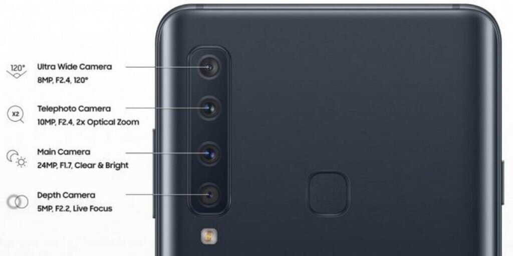 Использование тройной камеры для некоторых смартфонов уже становится нормой, но компания Самсунг решила убедить нас в том, что и это не предел. В своей новой модели Galaxy A9 (2018) разработчики используют уже целых 4 модуля. Подобного еще никто не делал, и внешний вид задней части гаджета, где и расположены эти камеры, выглядит несколько интересно. Как такое новшество сказалось на качестве снимков, и стоит ли того такая инновация? Камеры – это главная фишка, и именно на нее производители и сделали акцент. Тыльные камеры включают в себя стандартный модуль, а также широкоугольный объектив. Следующие 2 модуля представляют собой телефотообъектив и датчик глубины, который становится уже неотъемлемым атрибутом для устройств данной ценовой категории. В основном, он применяется для создания эффекта боке, когда задействуется портретный режим. Рассмотрим каждый модуль по-отдельности Основной Имеет разрешение 24 Мп, благодаря чему детализацию картинки существенно улучшена. Но присутствие мел