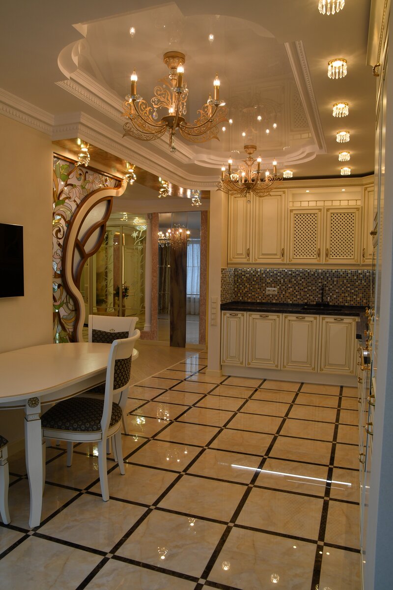 По мере возможности, мы пытались поддерживать отличительную особенность выбранного стиля – отсутствие дешевых вещей (отделки помещения, мебели, предметов декора). Колонны, скульптуры, антикварные вещи, фамильное серебро, фарфор, раритетные книги, - все то, без чего немыслим данный интерьер. А так же мебель из натуральной древесины, паркет из высококачественных пород дерева, и сдержанные основные цвета.