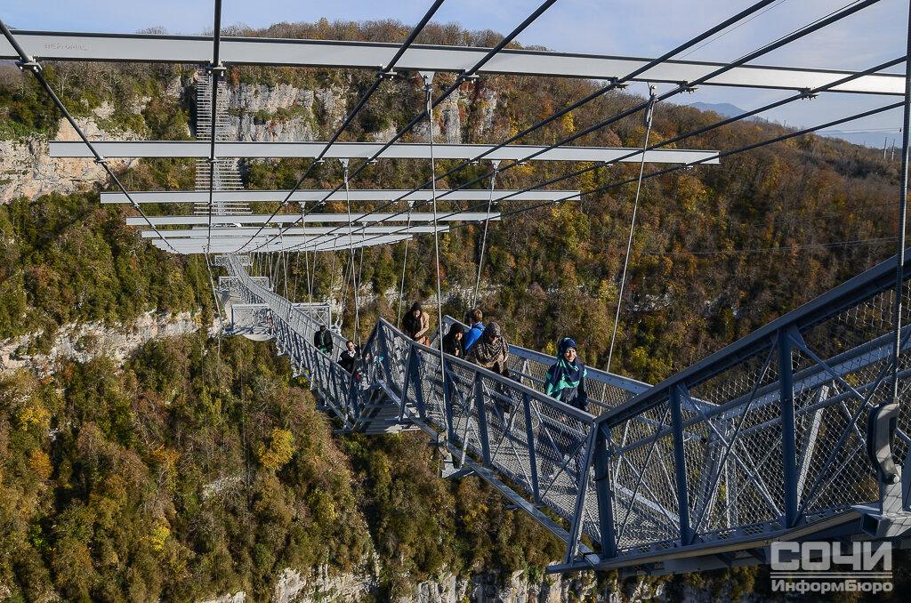 Подвесной мост в Skypark AJ Hackett Sochi вошел в рейтинг мостов на CNN Travel. Автором обзорной статьи о самых впечатляющих мостах стала независимый британский журналист Тамара Хинсон. В своей рейтинг тринадцати наиболее впечатливших ее мостов Хинсон включила те сооружения, по которым не просто можно ходить, а которые обязательны для посещения любителями приключений и острых ощущений. Первоначально рейтинг был опубликован ноябре 2014 года. Однако этой весной тема стала вновь актуально, материал обновили и опубликовали на CNN Travel. Помимо «Скайбридж», в рейтинг вошли бамбуковый висячий мост на Филиппинах, первый в мире пешеходный мост в Швейцарии, мост над ущельем Эль Чоро в Испании. Один из самых длинных в мире пешеходных подвесных мостов «Скайбридж» является сердцем Skypark AJ Hackett Sochi. Находящийся на высоте 207 метров над землей, мост строился два года, а проектирование и изыскания перед строительством заняли три года. При сооружении моста были использованы 740 тонн металл