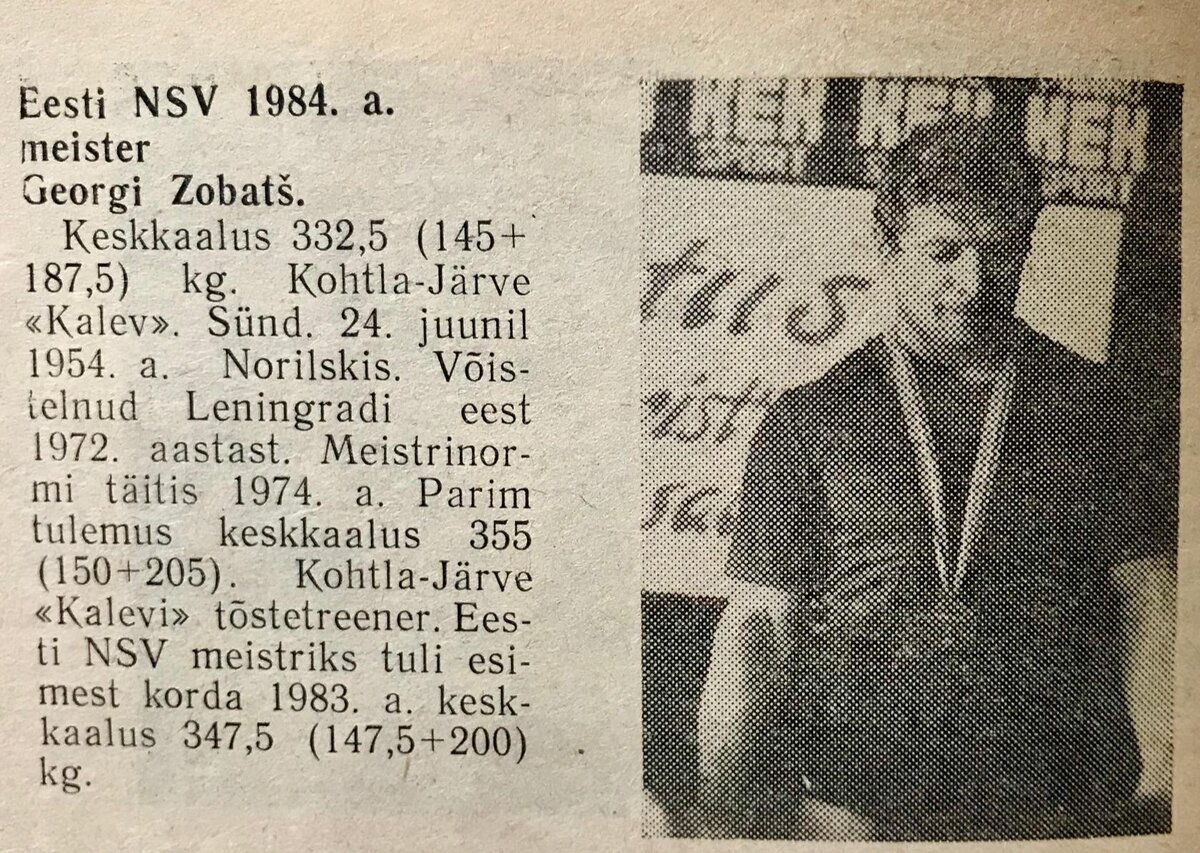 1983. Федерация тяжелой атлетики Эстонии в середине года подвела итог выступлений спортсменов с чемпионатов Эстонии, спортивных обществ и Кубка Балтики. 1983.06.15