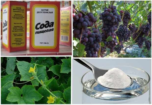 Знакомая всем сода может понадобиться не только на кухне: оказывается, у нее много полезных свойств, применимым в саду-огороде. Готовьтесь к приятным открытиям :) Средство от мучнистой росы Мучнистая роса часто появляется на огурцах, винограде, розах, смородине, яблоне и других растениях. Если вы не хотите использовать "химию", сода станет настоящим помощником в борьбе с этим грибковым заболеванием. Возьмите 4 чайных ложки жидкого мыла (мыло необходимо в качестве прилипателя), 2 ст. л. соды и растворите в 5 л теплой воды. Используйте раствор для обработки перед цветением, а потом повторяйте в течении сезона еще минимум 4 раза, примерно раз в неделю. Стимулятор роста для роз Вы можете удивиться, но чахлый куст роз можно заставить выгнать новые побеги, всего лишь обработав его содой. Чтобы приготовить "чудодейственный эликсир", используйте простой рецепт: На 5 л воды возьмите 1 ч. л. сульфата магния, половину чайной ложки нашатырного спирта и 1 ч. л. соды, тщательно растворите компоненты