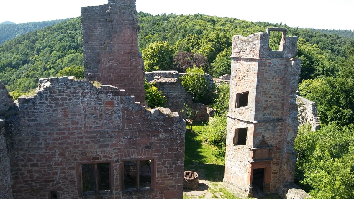 Пробежалась по нижнему ярусу замка, попрыгала по камням, погоняла ящерок. Ребенок закатывал глаза и приговаривал: " Вроде бы взрослая женщина..". Обзор с этого яруса невероятный на Рейнскую равнину, на Оденвальд и Шварцвальд. Выбирай себе сторону света и восхищайся. Только кто сказал, что я на этом остановлюсь? Душа и пятки рвались под облака. Скомандовав всем "За мной!" вошли во внутренний двор, там начался мой период закатывать глаза. Таверна, меню, ценник! И ребенок вещающий, что ему надо есть по часам и как раз настал прием пищи. Попытка всунуть ему электролиты в воде, не увенчалась успехом.
