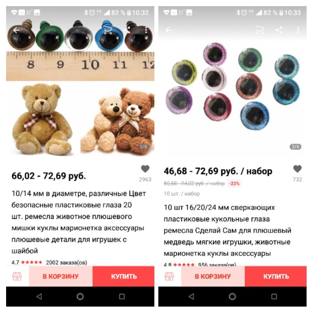 Я часто заказываю рукодельные штучки в интернете, так как у нас в городе очень скудный выбор ВСЕГО, элементарных пуговиц иногда не найти. С удовольствием иногда делаю заказы и на Алиэкспресс, нужно только внимательно читать отзывы, и не заказывать первый попавшийся товар, чтобы потом не было разочарований. Когда выгодно покупать на Али: 1. Когда занимаешься одним видом рукоделия постоянно и нужна большая партия одного товара: например 100 пуговиц, несколько упаковок пряжи, большой набор бус, несколько метров лент, 50-100шт глазок или носиков для игрушек. Тогда каждая единица обходится в копейки 2. Когда покупаешь "про запас", а не под конкретный проект, так как товар с Али может идти до 2-х месяцев Вот что я чаще всего заказываю на Алиэкспресс (кое-что уже приходило мне, а что-то пока в корзине): Глазки для игрушек - мои абсолютные фавориты: дешево, качественно, много Пуговицы для декора и украшения (так как вещи я не вяжу), чаще деревянные. Для сравнени