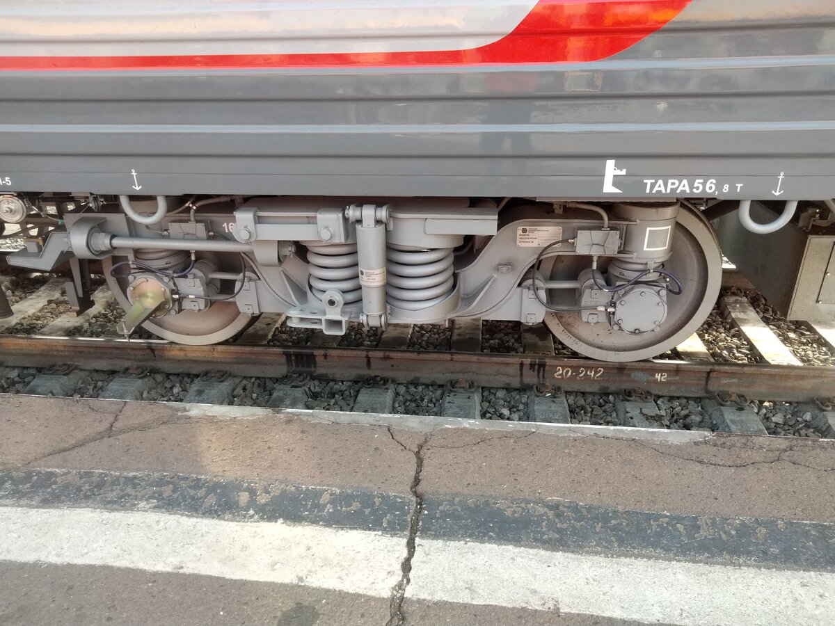 Чтобы разобраться, что же останавливает вагон нового образца нам придется заглянуть под вагон. Здесь мы увидим тормозные диски, которые находятся внутри колеи на оси каждой колесной пары. Причем на каждой колесной паре их два.