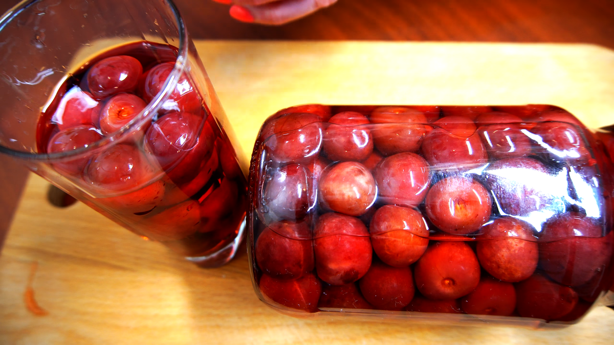 Вода 2 л. Мытою вишню в дуршлаге полностью погрузить в кипящую воду 4 раза (по 1 минуте), после чего вишню распределить по банкам. В воду куда опускали ягоду добавить сахар, довести до кипения. В банку с вишней добавить лимонную кислоту, залить до самого верха кипяченной водой с сахаром. Закрутить крышку, перевернуть проверить на герметичность. Накрыть пледом пока не остынит.