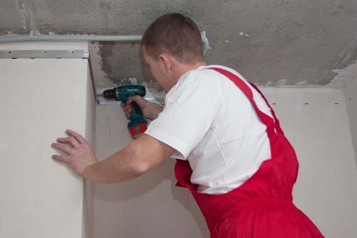 В данной статье мы расскажем как можно сделать натяжной потолок своими руками. Не будем заострять внимание на все способах монтажа натяжных потолков, а опишем наиболее подходящий метод для самостоятельной установки, этот способ установки натяжных потолков ориентирован на тех у кого нет тепловой газовой пушки и отсутствуют практические навыки установки огарпуненных полотен. Полотна натяжных потолков в гарпуне изготавливаются меньшего размера имея усадку, такие полотна необходимо нагреть для придания им эластичности и последующей натяжки. У нас пушки нет и покупать её ради установки пары потолков желания тоже нет. По этому мы будем использовать клиновой метод установки натяжного потолка, суть которого заключается в фиксации полотна натяжного потолка «по месту», с помощь клинового гарпуна, в стенавой профиль. Материалы и инструменты для самостоятельной установки натяжного потолка Из инструментов нам потребуется: перфоратор, бур 6 мм, шуруповерт, любой уровень, отбивочный шнур, стремянка,