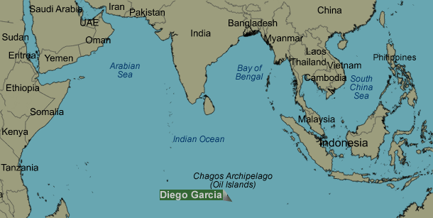 В далёком, 1965 году, Маврикий, есть такое небольшое государство в Индийском океане, «добровольно передал в аренду» архипелаг Чагос под строительство американской военной базы. «Гарантом» сделки выступала Великобритания, «управляющая» этим архипелагом с «лохматого» 1814 года. Они взяли на себя долгосрочное обязательство по передаче суверенитета над этими территориями сразу же после того, как сей архипелаг потеряет свои оборонительные качества. Время как вроде пришло и Маврикий напомнил об этих обязательствах. Генассамблея ООН, рассмотрев все обстоятельства дела, приняла резолюцию, призывающую Великобританию вернуть Чагос под суверенитет Маврикия, где и Штатам указывается, что им пора пересмотреть условия аренды одного из островов под свою базу. Но если Штаты откровенно проигнорировали сей документ, то Британия разродилась кучей высказываний своих чиновников самого различного ранга. «Совместные военные объекты Великобритании и США на британской(?) территории в Индийском океане помог