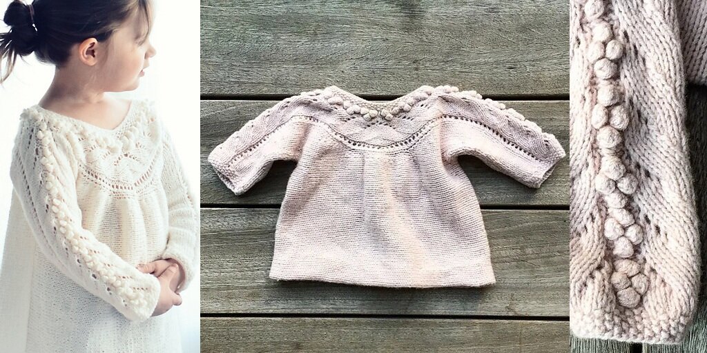Вязаная блуза для девочек с отделкой ажуром и шишечками