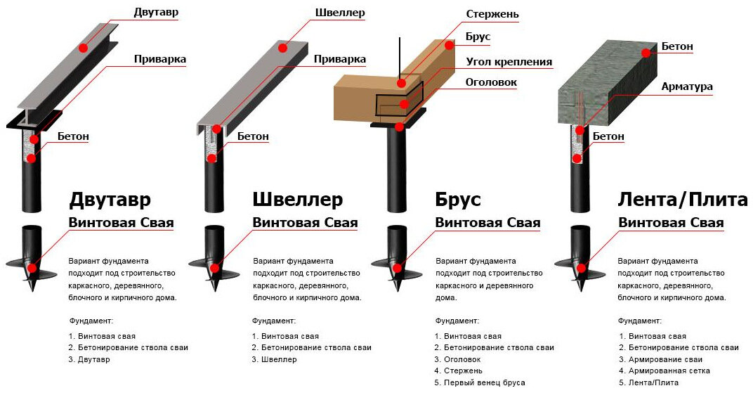 В малоэтажном строительстве используют чаще всего сваи диаметром 108 мм и лопастью 300 мм. Несущая способность такой сваи рассчитывается исходя из грунта. Таким образом нагрузка на одну сваю в глинистой почве будет равна 2-6 тонн, а свая, закру