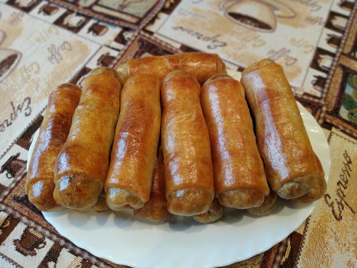 Разделила тесто на 12 порций. Очень тонко раскатала - с этим тестом это невероятно легко. И мука на подсыпку совсем не требуется.