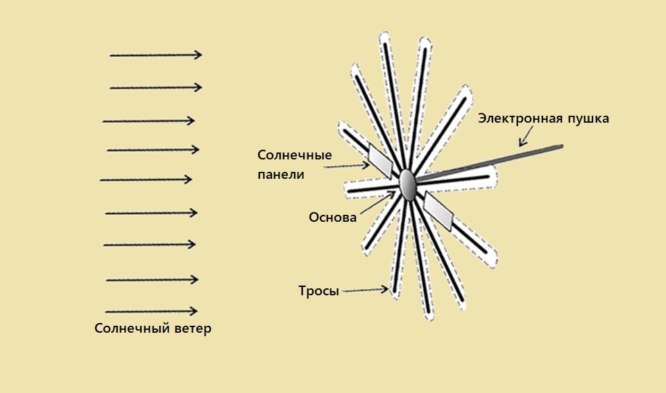 Он представляет собой конструкцию, получающую импульс за счёт потока заряженных частиц, испускаемых светилом — солнечного ветра. Его структура представляет собой набор тонких алюминиевых тросов большой длины. Специальная электронная пушка генерирует поток электронов против вектора движения корабля, наделяя тросы положительными зарядами. При взаимодействии с протонами солнечного ветра, парус получает импульс — так происходит движение аппарата в космическом пространстве.