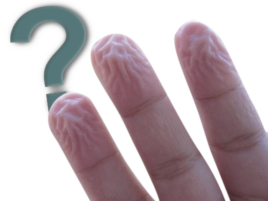 Многие думают, что пальцы сморщиваются в ванной из-за того, что они просто разбухают. Это логично, но не верно. Давайте разбираться. Если в общем, кожа пропитывается водой, и на пальцах это видно особо сильно, так как конечности содержат больше всего кератина. Но не всё так просто! Если обрубить нервные окончания связывающие кончики пальцев и мозг — эффект сморщивания исчезнет. Получается так, что нашему мозгу просто необходимо, что бы наши пальцы сморщивались в воде. Как оказалось, это очень важная функция организма! Вы могли заметить, что когда ваши пальцы сморщиваются, они похожи на рисунок протектора шины, или обуви. Такая форма способствует лучшему сцеплению с землей в мокрую погоду. Наши борозды на пальцах имеют только вертикальные каналы, что бы лучше отводить по ним воду, так же как и шины у автомобилей. Это всё заложено у нас в ДНК, что бы тысячу лет назад, мы могли, в дождливую погоду, кинуть копьё и добыть пищу. Ничего в нашем организме просто так не происходит. Каждая м