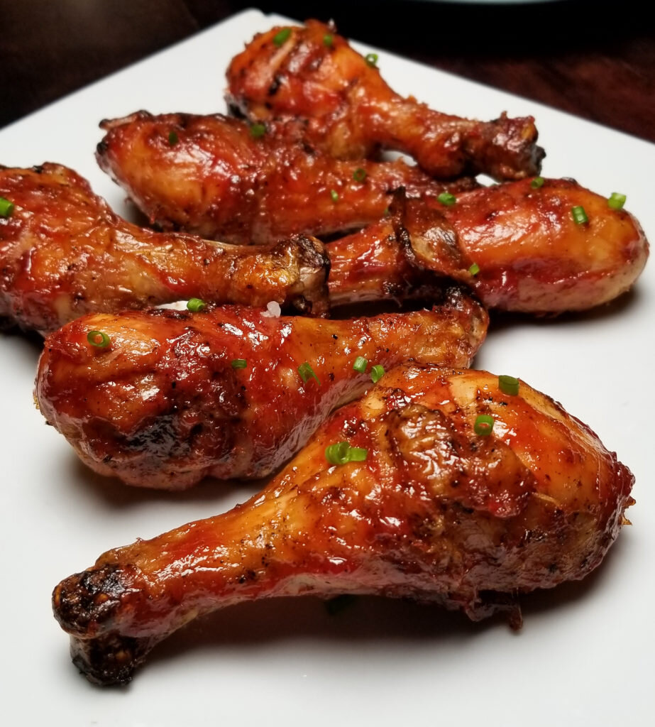 Куриные ножки на гриле со сладким и пряным соусом из филиппинского барбекю. Эти барабанные палочки очень просты в изготовлении и абсолютно аппетитны! Подавайте их на следующем барбекю для легкого ужина или обеда! Их можно подавать к отварному рису, овощам или к любому из ваших гарниров. Ингредиенты: 12 барабанных палочек 1/2 чайной ложки соли 1/2 ч.л. черного перца 1 столовая ложка оливкового масла нарезанный зеленый лук, по желанию Филиппинский соус для приготовления барбекю 1/2 чашки кетчупа 1/4 стакана коричневого сахара 1/4 стакана соевого соуса 2 столовые ложки яблочного уксуса 2 зубчика чеснока, рубленый 2 ч.л. лимонного сока 1/4 ч.л. соли 1/4 ч.л. черного перца 1 чайная ложка Шрирача 1/2 чайной ложки красного перца