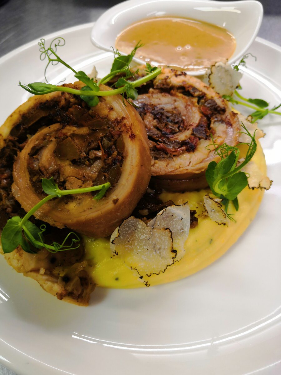 Этот рецепт я хотел проработать очень давно. Все мы знаем, что мясо кролика- это "не только три килограмма диетического мяса", но хотелось бы это мясо еще и правильно готовить. Самое популярное, что можно найти в интернете- это кролик в сметанном соусе и в горчичном соусе. А что, если приготовить рулет из кролика? Да не просто приготовить, а сделать мясо нежным, сочным и мягким? Давайте попробуем? Что нам нужно? Тушка кролика - 1 шт Лисички 0.5 кг(можно замороженные) Лук репка 0.5 кг Томаты вяленные в масле 100 гр Масло сливочное 100 гр Бекон с/к 200 гр Шалфей пара веточек Розмарин пара веточек Чеснок свежий 3 зубчика Что мы делаем? В первую очередь готовим начинку. Для этого мы режем мелко лук, вяленные томаты, бекон и слегка рубим лисички. Если вы используете замороженные грибы, то сначала залейте их холодной водой, добавьте сок одного лимона и проварите 15 минут, так мы избавимся от горечи. Обжариваем бекон, добавляем лук и грибы. Хорошо все обжариваем, добавляем томаты и мелко ру
