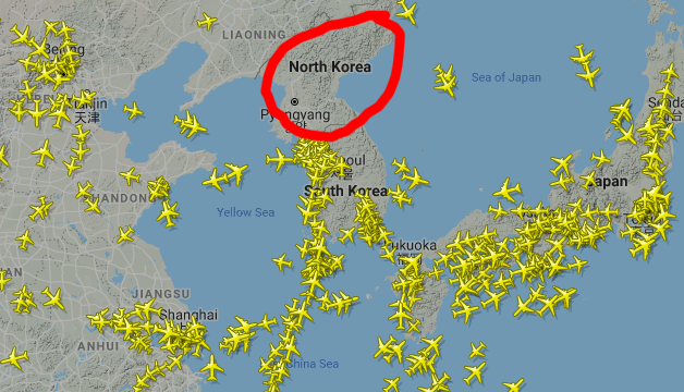 Здравствуйте! Если внимательно посмотреть на карту полетов онлайн, то можно обнаружить, что над Северной Кореей чистое воздушное пространство. Северная Корея, что просто запретила перелеты над своей страной? Да, Северная Корея закрыла свое воздушное пространство (для всех стран) и любой самолет (военный или пассажирский) она может сбить без каких-либо проблем для неё. Но, если полеты над этой страной запрещены, то как в неё попадают или уезжают люди? (тут должна быть шутка, что из Северной Кореи невозможно уехать, но её не будет). Дело в том, что в Корею прилететь на самолете можно только корейской авиакомпанией Air Koryo. Только этой компании разрешено осуществлять перевозку пассажиров. Но так как поток пассажиров не такой огромный, то и летают самолеты в Корею очень редко, в день совершается всего 3-4 авиарейса. И поэтому карта полетов почти всегда чиста над этой страной. Надеюсь, из статьи вы узнали что-то новое для себя. Прошу поддержать лайком и подпиской на канал.