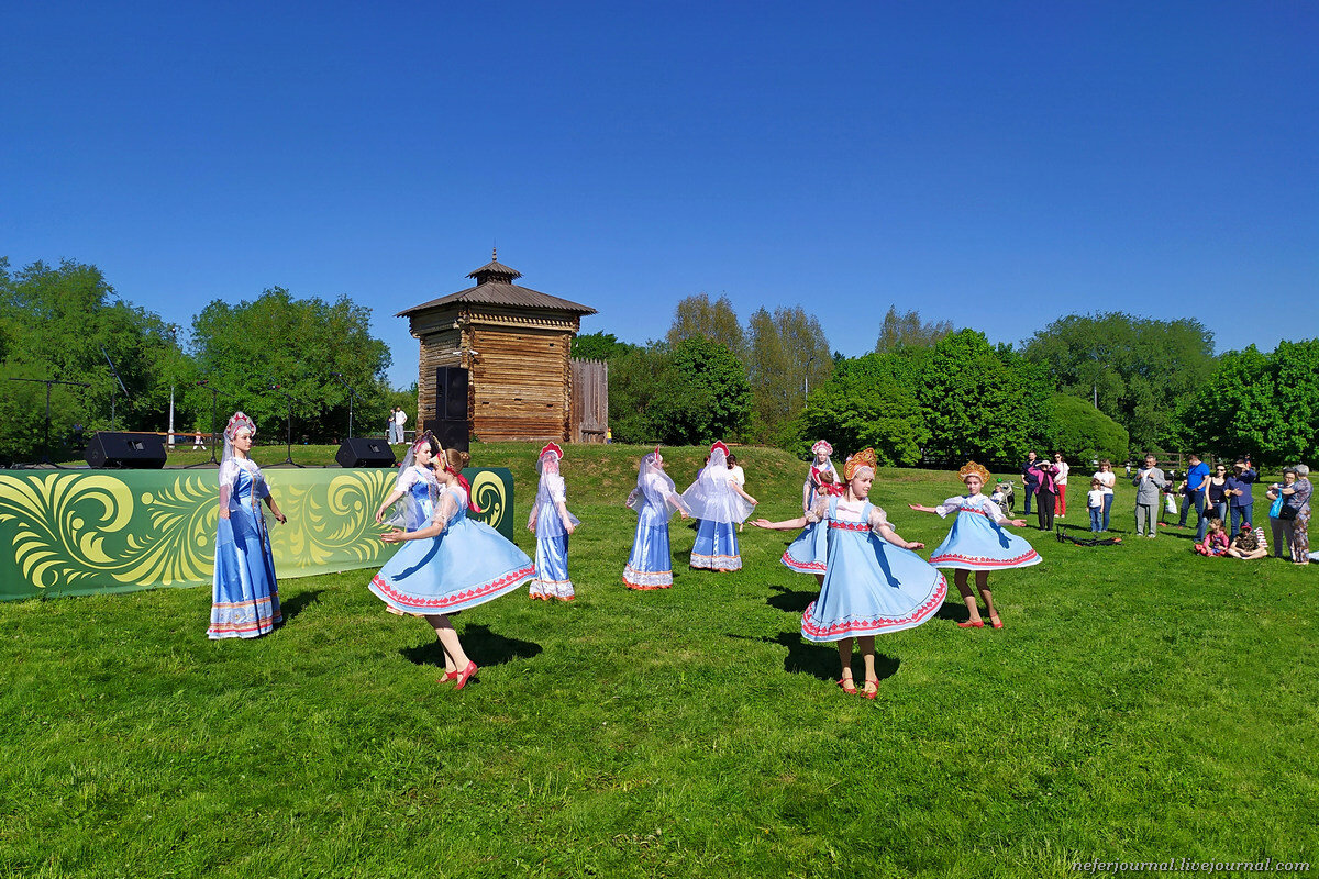 Прочитала про фестиваль в Фэйсбуке. Оказывается фольклорные праздники проводятся уже не первый год. Декорациями служат экспонаты музея деревянного зодчества. Прям очень в тему, переносишься в другой мир, как будто не в Москве.